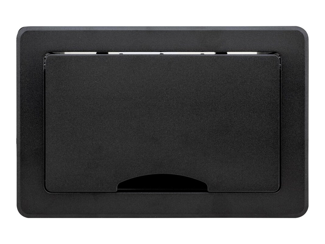 The TBUS-10xl is the enclosure of a modular system with a manually retracting lid. A complete TBUS system requires the enclosure, an inner frame, a power socket, inserts and a power cord.