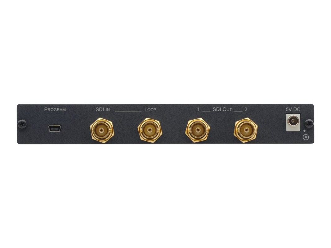 The VP-470 is a high-performance digital scaler for 3G HD-SDI signals. It up- or down-scales the incoming SDI signal to resolutions up to 1080p and routes it to two identical SDI outputs.