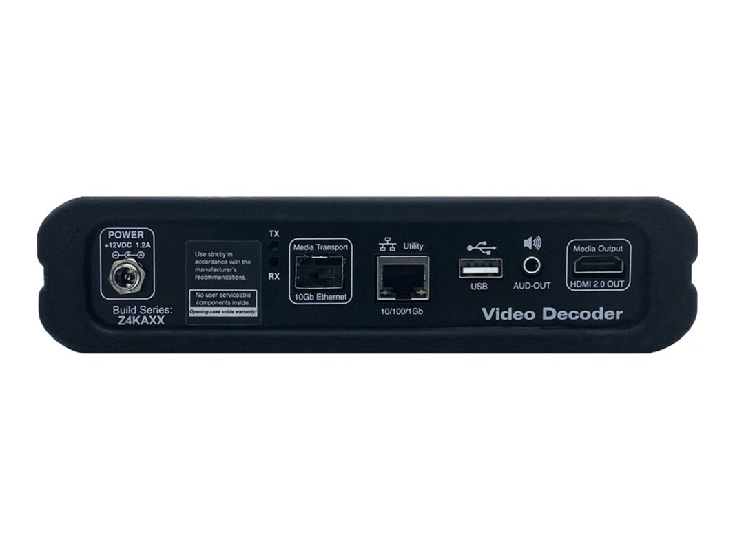 Furthermore, the ZeeVee ZyPer4K is equipped with advanced security features such as AES-128 encryption and HDCP 2.2 compliance, ensuring secure content transmission. Its low voltage power requirement and maximum power consumption of 15 W make it an energy-efficient choice for any setup. With robust connectivity options including RJ-45, HDMI, and USB interfaces, this decoder meets the demands of professional audio and video production environments.