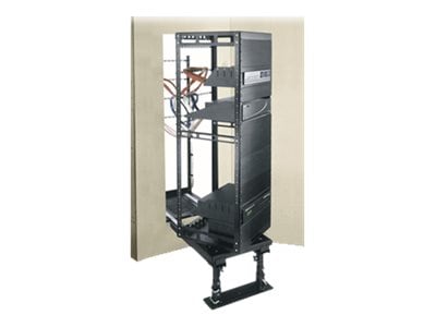 The AX-SXR system allows an entire bay of equipment to pull out and rotate for easy installation and access to rear for servicing. The telescoping service stand and tracks disconnect for storage.