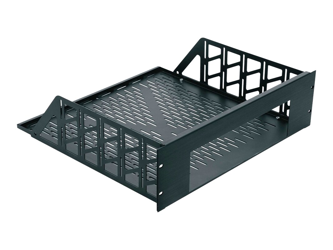 With the innovative RSH custom rackmounts, virtually any component can be installed in a standard 19" enclosure without modification. Custom cut to provide a perfect opening for the face of the component that is being mounted, each RSH unit provides a neatly-trimmed installation with a perfect fit and no gaps. With accurate details on over 9,500 components in our measured unit database, chances are we have the component needed on file. Unit assembles easily in minutes and includes rear brackets to prevent the mounted component from sliding back. Fully ventilated ears and bottom promote cooling. Depending on the needs of the installation, the units can be ordered with a black textured finish (model RSH4S) or a black brushed and anodized finish (model RSH4A). Bottom depths are automatically provided in 11-1/2", 14", 15-1/2", 17-1/2", or 20-1/2" styles. Custom rackmounts will accept any component up to 17-3/4" wide. Individual custom faces (less rack ears and shelf bottom) are also available in a black textured finish (model SFACE) or a black brushed and anodized finish (model AFACE). LCD rackmounts also available to mount most LCD monitors with up to a 17" screen size or with a maximum width of 17-3/8". NOTE: custom rackshelf height is specified at the factory based on physical restrictions. Custom cut to provide a perfect opening in the face Comes with an appropriate-sized vented rackshelf.