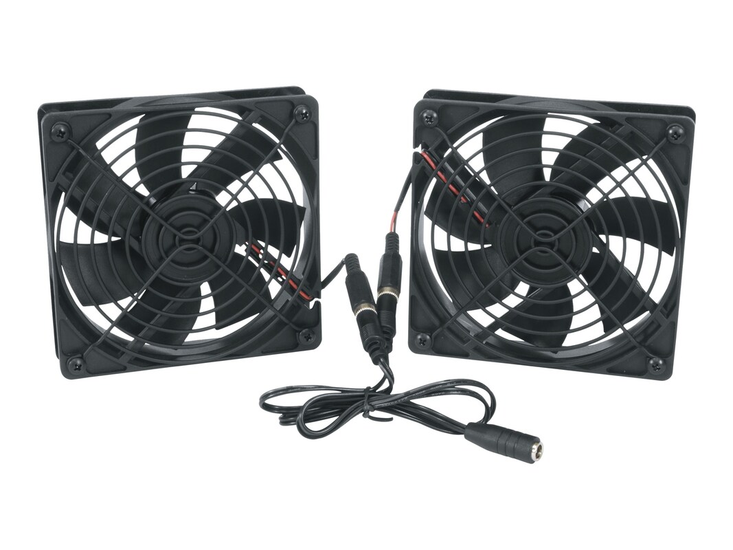 Includes two fans, cord, and hardware; 115V input voltage 4" DC fan kit rated at 138 CFM Includes two 69 CFM fans, hardware and cord (2) Fan guards included Includes international power supply kit.