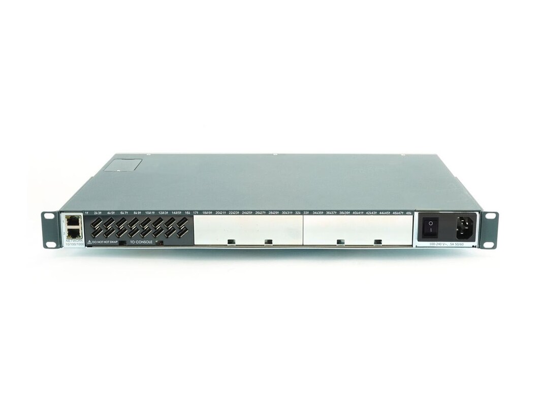 Integrated dual 1 Gb Ethernet or dual 1 Gb SFP interfaces. HTML5 support for Java-free web based telnet/SSH remote access to console ports that is browser independent. Provides multiple layers of out-of-band access with optional dial-up and cellular technologies. Reduces operating costs and security risks by eliminating the need for on-site interventions. Simplifies service deployments and balances CAPEX and OPEX with its modular design. Minimizes cable clutter with software-reversible device port pins. Increases testing productivity and efficiency as a DUT (device under test) aggregation tool. Protects management interfaces with authentication and FIPS 140-2 compliant encryption. Built-in support for environmental sensors and dry contact access control devices.