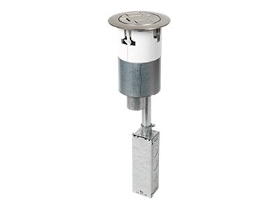 The Legrand Wiremold Evolution Series poke-thru device is designed for those in need of reliable, in-floor power solutions. With a sleek, round shape and constructed from durable aluminum, this prewired unit is not only easy to install but also blends seamlessly into any environment. Capable of supporting 4 power sockets and a 20 A max electric current, it's suitable for busy settings. Its compliance with key standards such as NAFTA, NEC 314.27-C, and RoHS ensures that it meets high safety and quality requirements. Whether for commercial or residential use, the Wiremold poke-thru device offers a perfect combination of functionality, durability, and compliance.