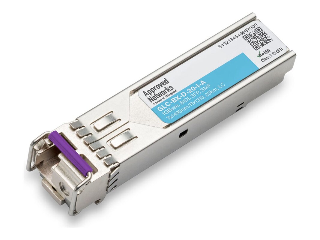 The Approved Networks transceiver module from Legrand offers Ethernet 1000Base-BX-D connectivity, ensuring high-speed data transfer rates of up to 1.25 Gbps for efficient and rapid data exchange. Designed to meet the demands of modern networking, it features Bi-Directional (BiDi) technology, Digital Diagnostics Monitoring (DDM), and Digital Optical Monitoring (DOM) support, providing sophisticated control over the optical path for enhanced signal quality.