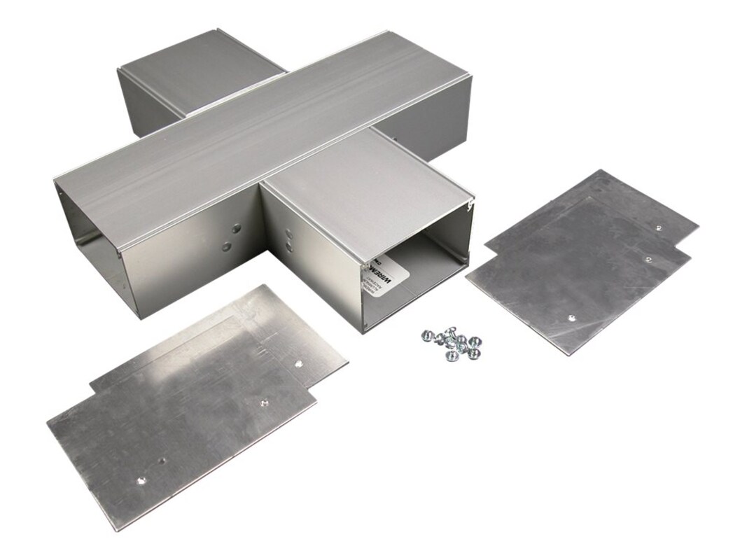 90 degree cross-through connection of two runs of raceway. Four AL3001 couplings included.
