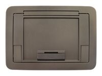 Low profile cover designed to attach to the EFB45S style floor boxes. Each cover is made of die cast aluminum and is equipped with a durable hinge allowing the cover to rotate open 180 degree, a 1/4'' deep recessed area to accept the finished floor covering, and two slide egress doors that lock in the open position and automatically close around the cables when the cover is closed. The cover assemblies are designed to sit flush with the finished floors such as: carpet, tile, and wood.