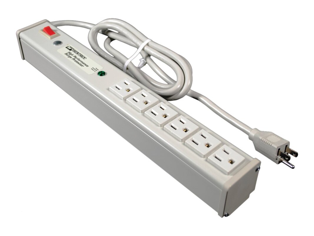 Discover the Wiremold Sentrex surge protector, a high-grade plug-in outlet center unit designed to safeguard your electronic devices from power surges and spikes. Manufactured by Legrand, this surge protector features a robust aluminum housing suitable for dry locations and offers both slide-off and snap-on mounting options for flexible installation. With a circuit breaker, a clamping level of 600 V, and EMI/RFI noise filtration of 50 dB, it ensures your devices are protected while minimizing noise interference. The unit includes six power NEMA 5-15R output connectors and a 1.8 m integrated power cable, providing ample connectivity for multiple devices. Compliant with cULus standards, the Wiremold Sentrex surge protector is a reliable choice for ensuring the safety and optimal performance of your electronic equipment.