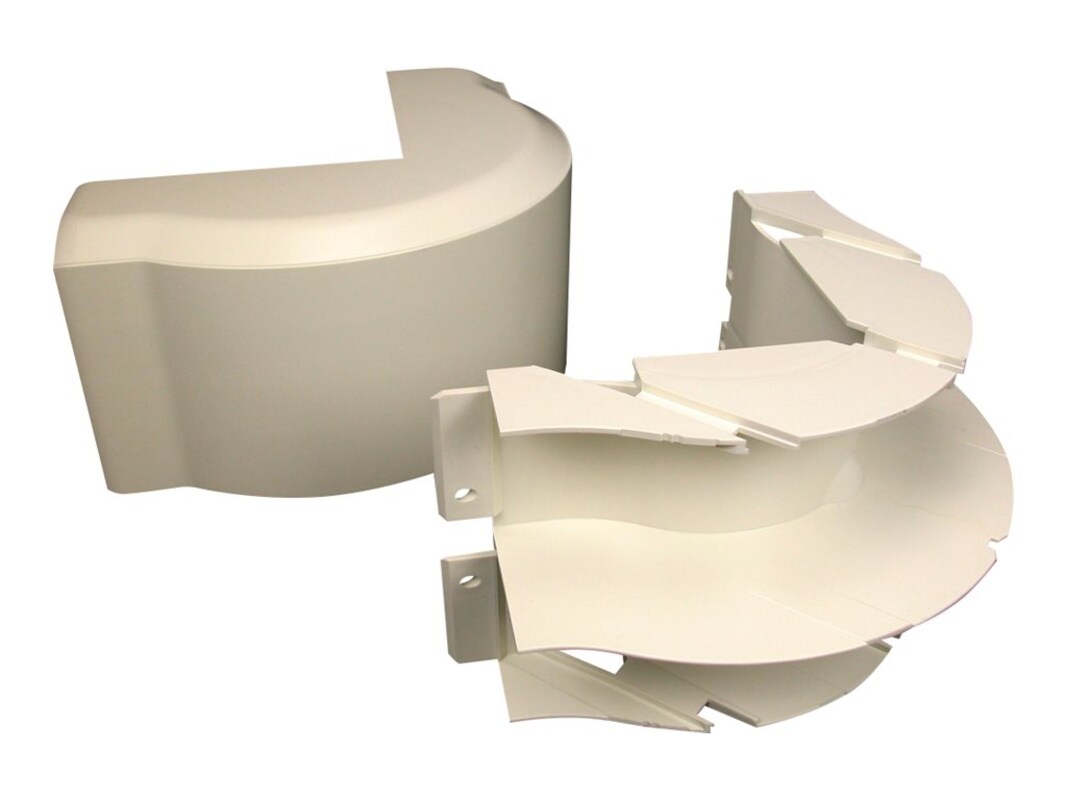 A 90-degree external corner with integral dividers to provide 2'' (51 mm) cable bend radius for UTP and fiber optic installations. Ideal for lay-in or pull-through installations.