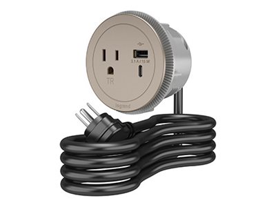 The Wiremold RFPCRUAUC-NI10 Round Furniture Power Center is a stylish and practical power solution designed to meet the demands of today's technology-driven environments. Featuring one standard outlet, one USB-A port, and one USB-C port, this power center allows for convenient charging and powering of multiple devices at once. With a generous 10-foot cord length, the RFPCRUAUC-NI10 provides flexibility in placement, making it easy to access power from various locations. Its sleek nickel finish adds a touch of modern elegance, seamlessly integrating with a variety of furniture styles while maintaining a polished look. Ideal for office desks, conference tables, or home workspaces, this round power center helps create an organized and efficient environment, ensuring your devices stay powered and ready for use.