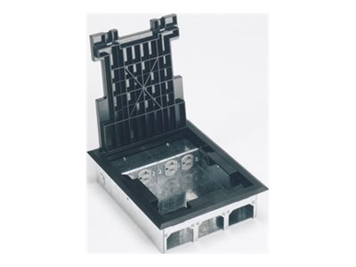 The Legrand Wiremold SAF2 1/2 Series floor box is a solution for managing cables and connections within any space. This product line is designed to enhance the functionality and aesthetics of your floor space, offering a tile cover and trim that seamlessly integrates into your environment. The package includes 2 duplex receptacle power plates, 3 blank communication plates, and a cover plate, providing a comprehensive solution for power and communication needs. With its compliance to a multitude of standards such as CEC 12-2500, NAFTA, NEC 300.22-C, and more, it ensures safety and reliability in a wide range of applications. Additionally, the floor box features TopGuard protection, which prevents the ingress of water and debris, protecting your connections and maintaining the integrity of your setup. Whether for commercial or residential use, the Wiremold SAF2 1/2 Series floor box is an ideal choice for those seeking a reliable, compliant, and aesthetically pleasing cable management solution.