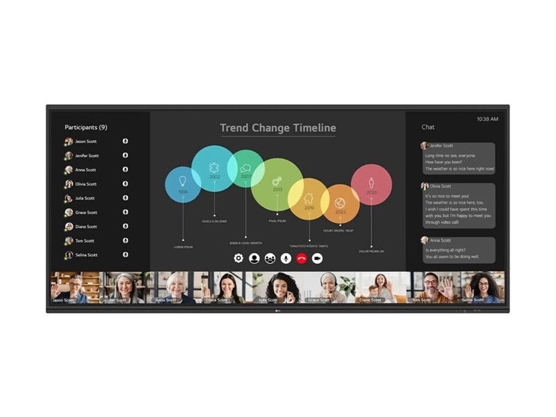 The LG CreateBoard 105TR5WP-B is engineered for dynamic engagement in both educational and commercial environments. This 105-inch LED-backlit LCD flat panel display offers a 5K UHD resolution of 5120 x 2160, allowing for vibrant images and precise details that enhance presentations and collaborative work. With a contrast ratio of 5000:1 and a brightness of 400 cd/m², users can expect clear visibility even in brightly lit spaces. The display incorporates features such as multi-touch support, an 8-microphone array, and a tempered-glass surface for durability and ease of cleaning. Connectivity options are extensive, including multiple HDMI, USB, and LAN ports alongside wireless options via Wi-Fi and Bluetooth 5.3. The built-in speaker system with 36 watts of total output power ensures that every presentation is heard clearly. Additionally, the LG ConnectedCare feature and the Crestron Connected certification highlight the board's versatility in modern networked environments. With energy-saving capabilities and a robust operating range from 0°C to 40°C, the LG CreateBoard stands ready for any challenge, making it an ideal choice for businesses and educational institutions alike.