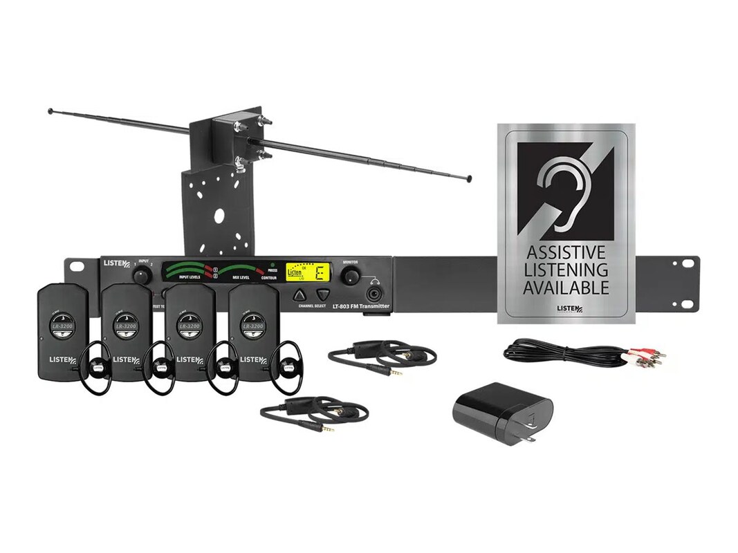 The Listen Technologies iDSP Essentials LS-31-072 is a wireless audio receiver and transmitter kit designed for assistive listening. It includes a powerful RF transmitter and multiple components to enhance audio experiences in various environments. With four Intelligent DSP RF Receivers, users can expect clear sound quality that caters to diverse listening needs. The package also encompasses essential accessories like a rack mounting kit, four universal ear speakers, and an antenna kit. Two Listen LA-430 Intelligent Ear Phone/Neck Loop Lanyards add comfort and versatility. Furthermore, a four-port USB charger ensures easy recharging of devices, and the included notification signage kit aids in proper usage and accessibility. The LS-31-072 aims to promote better communication and auditory support, especially in settings where effective listening is crucial.