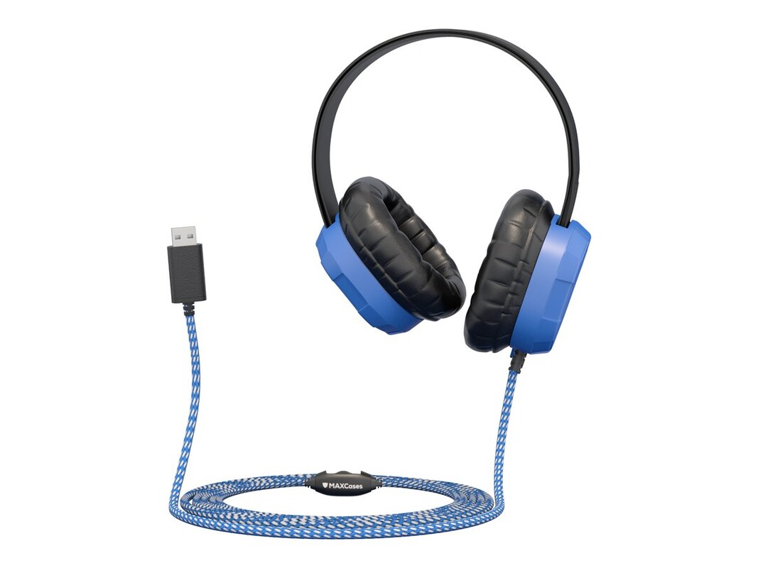 Preferred over earbuds for comfort and sound control, over-the-ear headphones and headsets play an important role in classrooms, school libraries and learning labs. The MAXCases Extreme Headset covers all the bases, with a design that's ideal for the rigors of all-day use. Adjustable ear pieces with padded covers provide comfort for extended listening, while the durable, fixed-position stub mic delivers clear audio quality. Accessibility features like Left-Right earpiece labels and in-line volume control make them easy to use by even the youngest students. Created to last, the rugged design includes a durable, braided cable, a flexible headband and smooth, easy-to-clean surfaces. Drop tested up to 6.6 feet (2 meters), and covered by a two-year warranty. This model features a USB connector. For the 3.5mm jack version, click here.