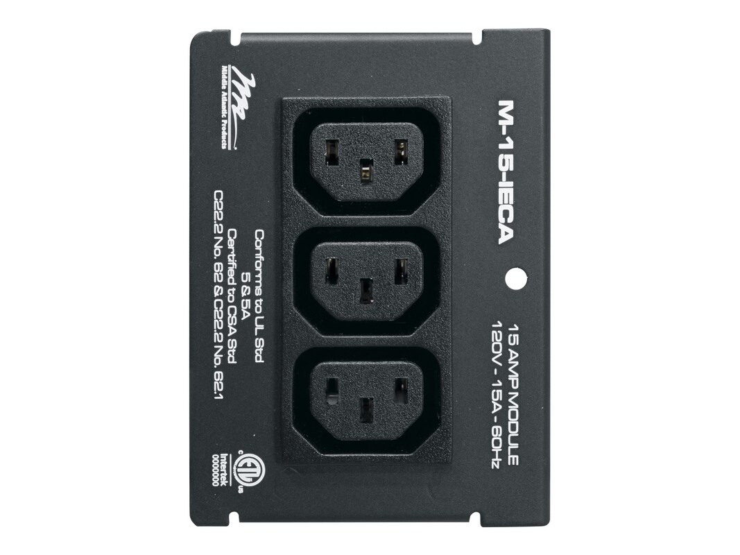 Compatible with MPR Series raceways Modules allow the customization of a power strip to meet project needs Compatible with MPR Series raceways 115V input power, with unique genderless connector Steel construction, with black textured powder coat finish.