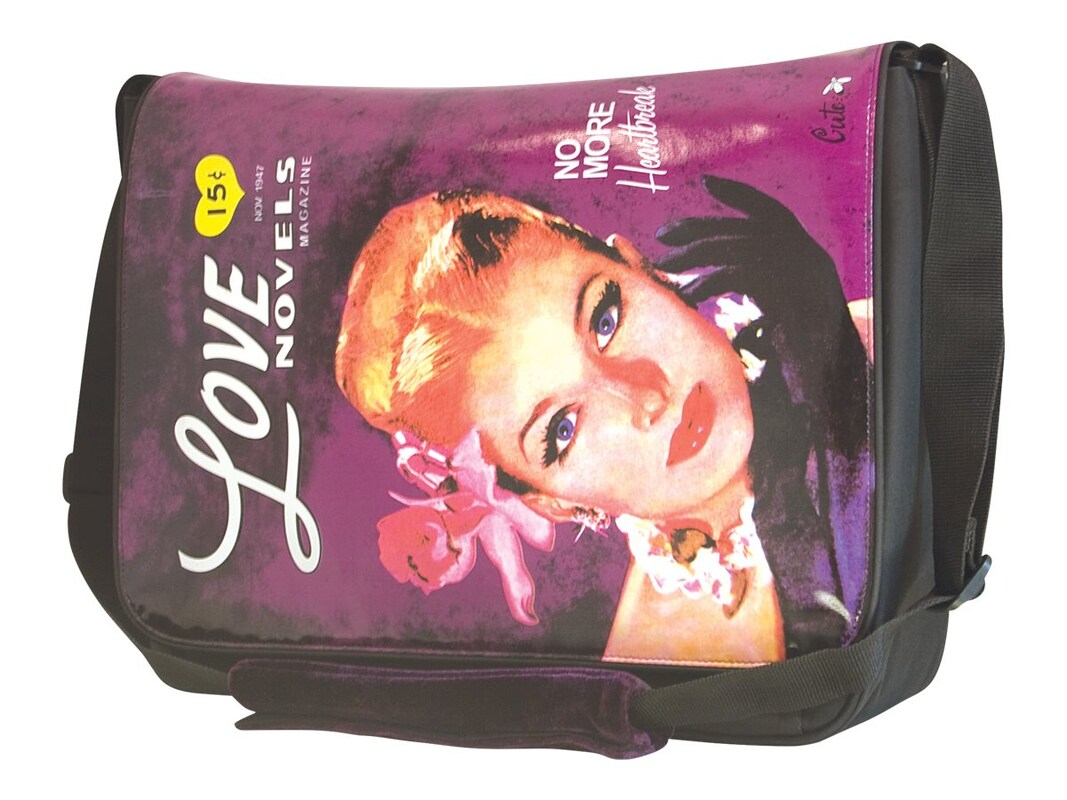 Show off your fun side with the Maddie Powers Messenger Bag by Mobile Edge! Designed to carry laptops with screens up to 15.4”, this bag features superior SafetyCell computer protection, a built-in cell phone pouch, and plenty of interior pockets to organize your gear. Featuring actual pulp magazine images from the 40s and 50s, this sassy bag will hold all your gear and is designed to be "Over-Stuffed!” Extras like plush velveteen trim and a cushioned shoulder strap make this case as fun as it is functional!