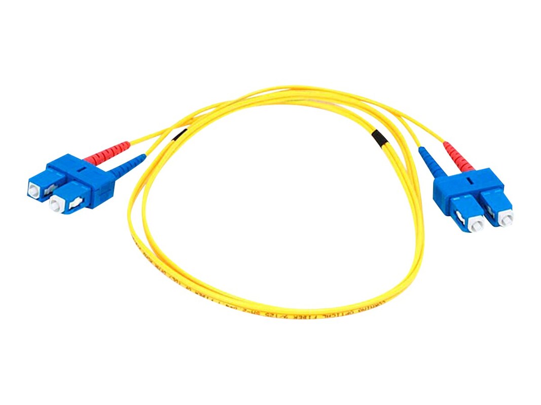 This is an "Yellow" single-mode cable with a 9µm core and 125µm cladding diameter. The cable has a color-coded Dual SC connector on each end.