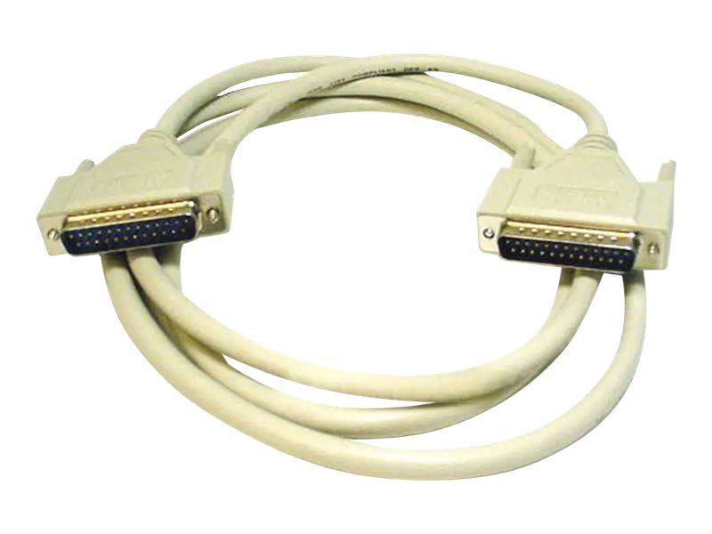 This parallel printer cable features a DB25 male connector on each end. Each pin provides a straight through connection to the same pin number on the other end. The connector heads are molded onto the cable and each end has thumbscrews for securing the connectors to the DB25 ports.