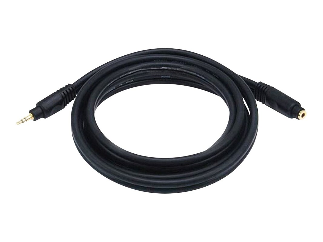 The 3.5mm (1/8") stereo TRS connector is more commonly known as the headphone jack on portable mp3 players and mobile phones. This cable features a male 3.5mm stereo (TRS) plug on one end and a female 3.5mm stereo jack on the other end, each with molded connector housings and strain relief boots. Each connector is gold-plated to ensure smooth, corrosion-free connections.
