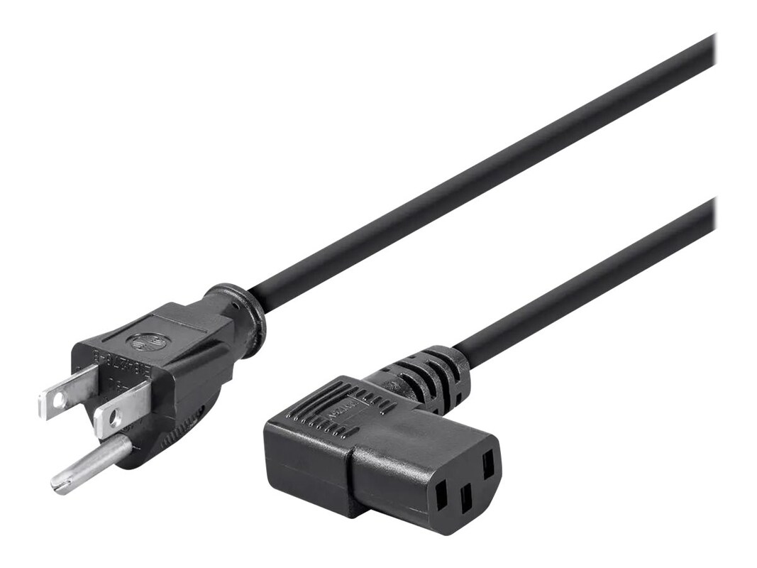The North America NEMA 5-15 plug to IEC 60320 C13 female connector power cord works with most PCs, monitors, scanners, and printers. The angled power cord features a 90-degree C13 connector (PC side), which allows for better placement in tight situations. They are made to the same stringent standards as are standard PC power cables with the convenience of an angled connector.