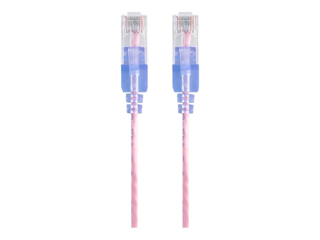 Monoprice SlimRun Cat6A 30AWG 550MHz UTP Pure Bare Copper Wire 10G Snagless Patch Cable, Pink, 7ft, 5-pack
