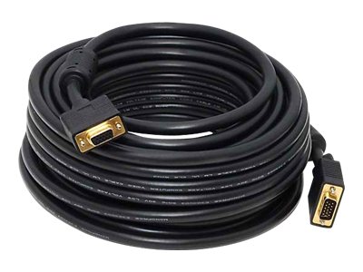 Despite the introduction of DVI and HDMI, the common VGA connection is still the primary connection for most computer monitors. This double-shielded extension cable is designed to handle analog VGA and extended VGA resolutions. It features a male DE-15 connector on one end and a female DE-15 connector on the other end. The connectors and pins are gold plated for smooth, corrosion-free connections. It includes ferrite cores at each end, which ensure that EMI and RFI interference will not enter your video system. This cable is CL2 rated, which indicates that it complies with fire safety and insurance standards, making it safe for use through or within the walls of residential class buildings.
