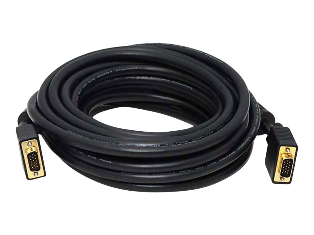 This double-shielded cable is designed to handle analog VGA and extended VGA resolutions. It features gold-plated male DE-15 connectors on each end for smooth, corrosion-free connections. Each heavy-duty connector head includes thumbscrews for securing the plug to a panel connector. It includes ferrite cores at each end, which ensure that EMI and RFI interference will not enter your video system.