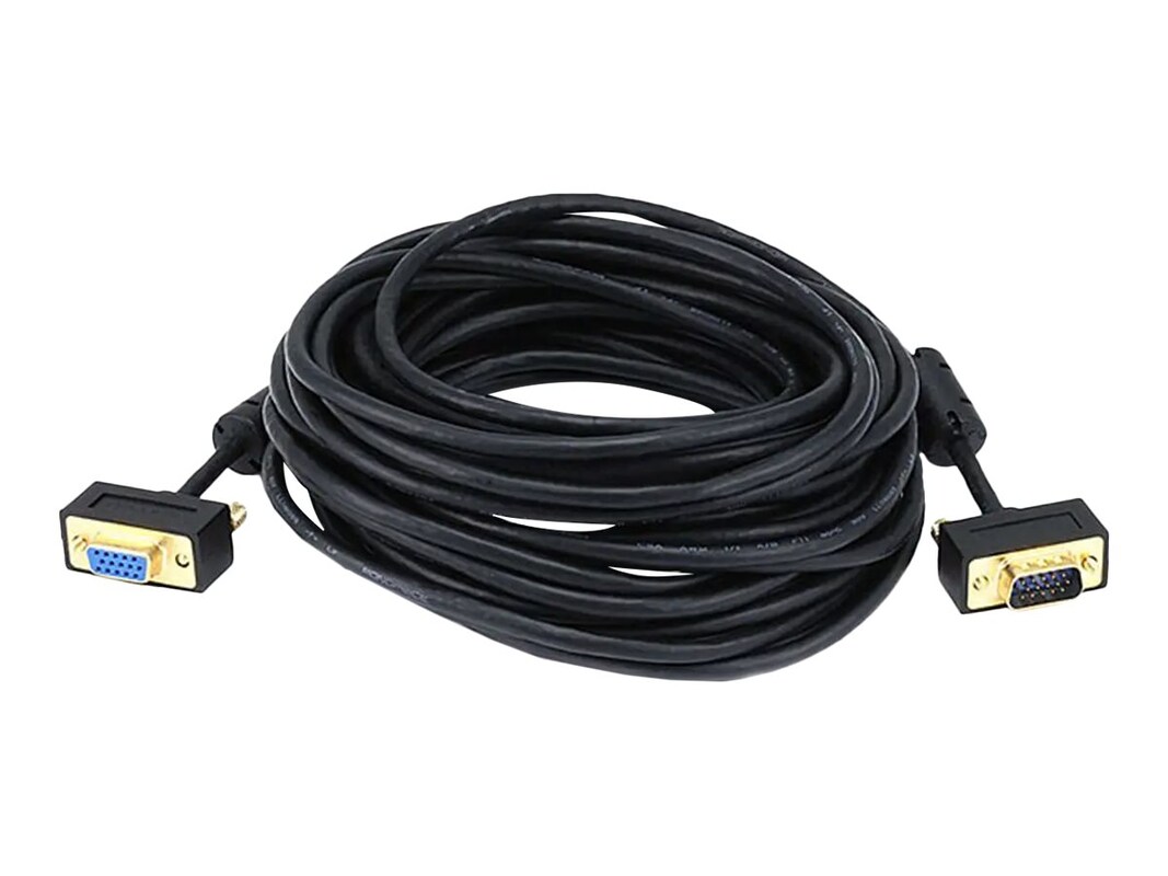 The cable features a male DE-15 (aka HD-15 or DB-15) connector on one end and a female DE-15 connector on the other end, each gold plated for smooth, corrosion-free connections. It includes ferrite cores at each end, which ensure that EMI and RFI interference will not enter your video system.