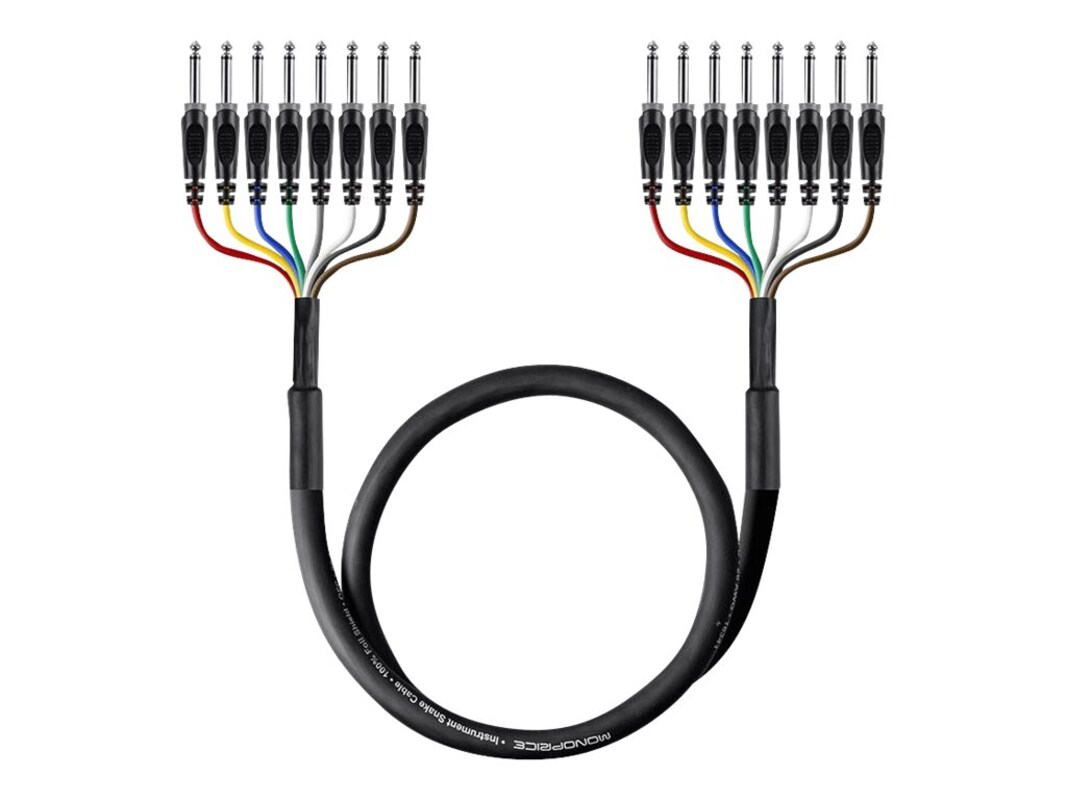 Connect up to eight channels of audio between equipment with 1/4-inch TS jacks using this 8-Channel 1/4-inch TS Male to 1/4-inch TS Male Snake Cable from Monoprice!