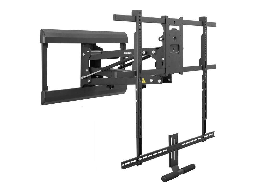 The Mount-It! MI-384L is designed for enhancing the viewing experience of flat panel displays ranging from 65 to 85 inches. This full-motion mounting kit allows for versatile placements above fireplaces or on walls. With a tilt range of -5° to 10°, along with swivel adjustments of -30° to 30°, it ensures optimal viewing angles for any setup. Height and leveling adjustments provide further customization to meet individual needs, accommodating different room layouts and preferences. Constructed to support a maximum load of 50 kg, the MI-384L mount is robust, featuring a flat panel mount interface suitable for various screen sizes. The setup process is straightforward, allowing users to securely mount their displays with ease while maximizing wall space. Experience the convenience and flexibility of the Mount-It! MI-384L for a refined home theater atmosphere.