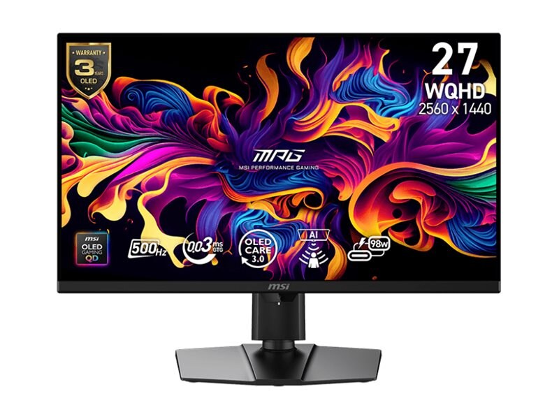 The MSI MPG 271QR X50 monitor delivers a viewing experience with its 27-inch diagonal Quantum Dot OLED display. With a native resolution of 2560 x 1440 and a refresh rate of 500 Hz, it caters to both gamers and professionals seeking vivid visuals and responsive performance. Featuring brightness up to 1000 cd/m² and a contrast ratio of 1500000:1, this monitor ensures colors are displayed with accuracy and depth. Designed with a wide viewing angle of 178 degrees, it allows for flexible viewing without color distortion, making it suitable for collaborative environments.