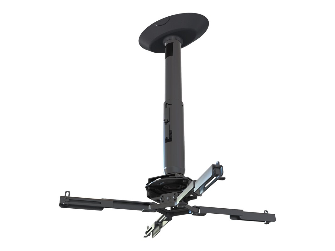 Ideal for projectors weighing up to 70 lb. Built-in roll, pitch and yaw adjustments make alignment fast and easy. Quick release mechanism allows projector to be easily removed for service.