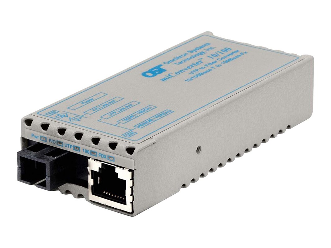 The miniature miConverter 10/100 is a rate-switching 10/100 UTP copper to 100Base-Fx fiber media converter that provides cost-effective fiber network extension and connectivity. The miConverter 10/100's Plug-and-Play capability ensures compatibility with network equipment and simplifies fiber-to-the-desktop deployment. The miConverter 10/100 supports a variety of fiber types and offers many power options.