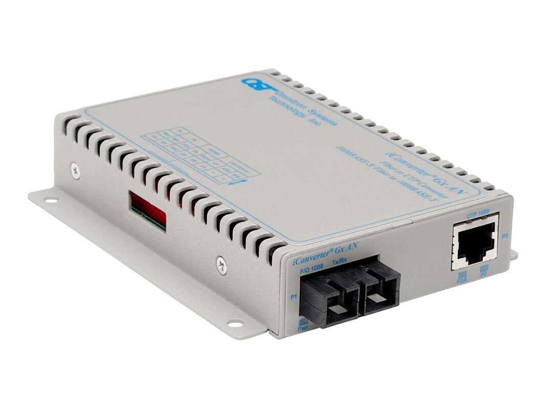The iConverter Gx AN Media Converter is a managed media converter that provides 1000BASE-T UTP to 1000BASE-X fiber conversion between Gigabit networking devices.