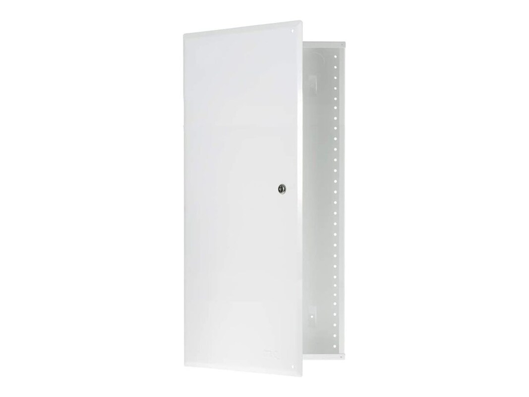 This 28" enclosure is the perfect solution for a basic structured wiring system. It features larger top openings that make pulling wire easier as well as additional knockouts, more side lances, and side tabs for more flexible mounting. It includes a hinged cover.