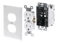 This outlet kit is the power source of devices mounted in the low voltage enclosure. It is designed to mount in the rectangular knockout location at the bottom of the enclosure.