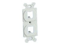 Mini-Com 106 Duplex Module Frame accepts Mini-Com modules for STP and UTP, fiber optic and audio/video, which snap in and out for easy move adds, and changes. It mounts behind standard 106 NEMA faceplates.