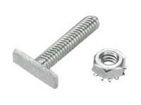 T-bolts can be used for additional attachment when securing FiberRunner channel to mounting brackets. For example, a T-bolt can be inserted thru a 12x4 mounting bracket and positioned within the center rib structure on the underside of 12x4 channel. By tightening the nut, the 12x4 channel is more securely fastened to the mounting bracket.