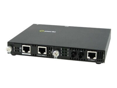 Perle's advanced line of managed 10/100 Ethernet media converter, transparently connects UTP Ethernet copper to multimode fiber. While providing an economical means of extending your existing copper based network connection, this media converter is SNMP manageable to enable complete control and status viewing of your fiber links. Perle 10/100 managed media converter comes standard with extensive cost and time saving features.