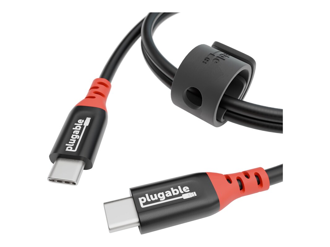 The Plugable 240W USB C cable is engineered for pure charging performance and total peace of mind. With no data lines, it's a genuine charge-only solution - ideal for security-conscious users who want to avoid juice jacking when charging in public spaces. This C to C cable is a fast charging solution that supports up to 240W (48V/5A) Extended Power Range for high-demand laptops, tablets, and smartphones. An integrated E-Marker chip ensures flawless USB PD 3.1 compliance to deliver power safely and efficiently. The 1m (3.3ft) length offers optimal reach without clutter. A built-in cable tag clearly identifies specs, while the included strap keeps your setup neat whether at your desk or on the go. From gaming laptops to pro tablets, this fast charging cable works seamlessly with PD-compatible devices and chargers, making it a dependable choice for home, office, or travel use.