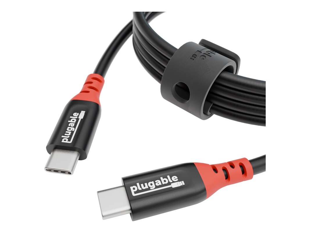 The Plugable 2m (6.6ft) 240W USB C cable is engineered for pure charging performance and total peace of mind. With no data lines, it's a genuine charge-only solution - ideal for security-conscious users who want to avoid juice jacking when charging in public spaces. This C to C cable is a fast charging solution that supports up to 240W (48V/5A) Extended Power Range for high-demand laptops, tablets, and smartphones. An integrated E-Marker chip ensures flawless USB PD 3.1 compliance to deliver power safely and efficiently. The 2m (6.6ft) length offers optimal reach without clutter. A built-in cable tag clearly identifies specs, while the included strap keeps your setup neat whether at your desk or on the go. From gaming laptops to pro tablets, this usb to c cable fast charging works seamlessly with PD-compatible devices and chargers, making it a dependable choice for home, office, or travel use.
