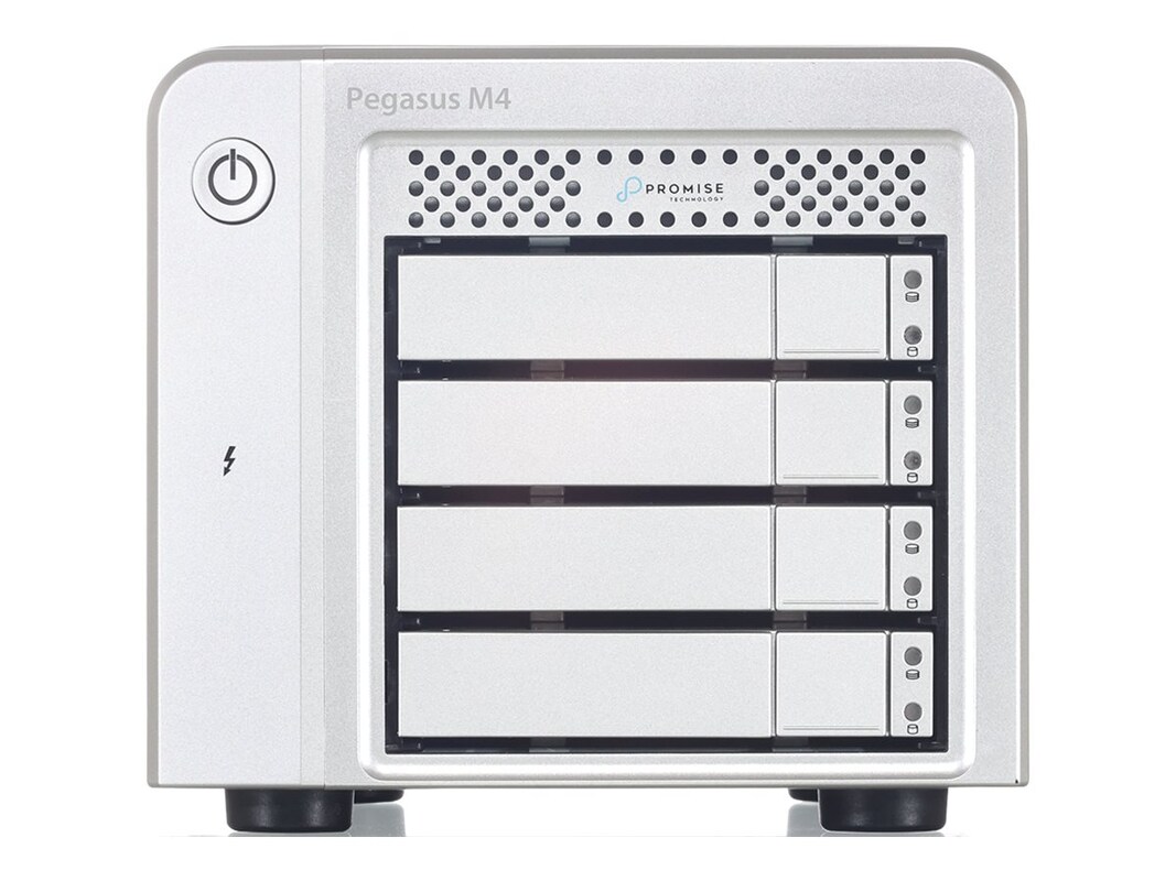The Promise Pegasus M4 (4TB, 4x1TB SSDs) is a high-speed, professional-grade storage solution designed for creative professionals and enterprises. It supports multiple RAID configurations (RAID 0, 1, 10, 5, 6, and JBOD), offering a balance between performance and data protection. Featuring dual Thunderbolt and USB 3.1 Gen 2 interfaces, it ensures lightning-fast transfer speeds and broad compatibility with Mac and Windows systems. With hot-swappable 2.5" bays, users can perform easy maintenance and upgrades without downtime. Built on the PROMISE RAID engine, the compact and portable Pegasus M4 is ideal for 4K video editing, large datasets, and critical backup applications, providing power, flexibility, and reliability on the go.