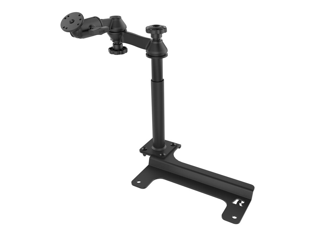 The RAM No-Drill mounting component by National Products is designed to provide a secure and convenient in-car solution for compatible vehicles, including the Ranger, Explorer, and Bronco. Constructed from durable steel and marine grade aluminum, this mounting system ensures longevity and resilience against challenging environments. The powder-coated finish offers a sleek look while protecting against wear and tear, making it an essential accessory for those needing reliable in-car mounting options. With features such as a ball mount, telescopic pole, and dual articulating swing arm, this system offers flexibility and ease of use. It can support a maximum load weight of 1.81 kg, making it suitable for various applications. The package includes all mounting hardware needed for installation, ensuring a straightforward setup for users looking to enhance their vehicle's functionality.