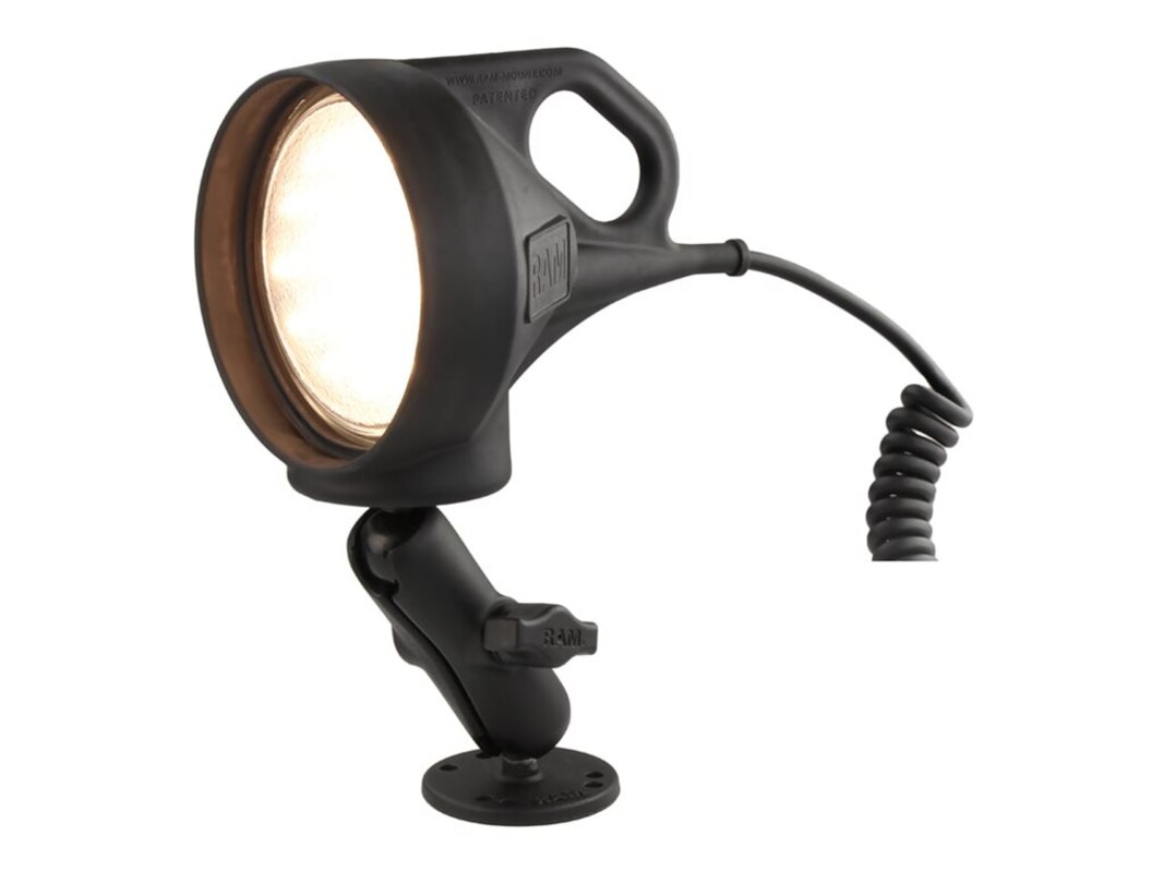 Discover a solution for spotlight applications on boats with the RAM mount from National Products. This product is designed to cater to the needs of boat owners, featuring a construction of marine grade aluminum and rubber that ensures durability and weather resistance. The inclusion of an LED spotlight significantly enhances visibility, making it a useful tool for nighttime navigation or low-light conditions. The package comes complete with a B size double socket arm and a round plate with ball, offering versatile mounting options to accommodate various installation requirements. Whether you're looking to improve safety or convenience on your boat, this mount is equipped to meet your needs.