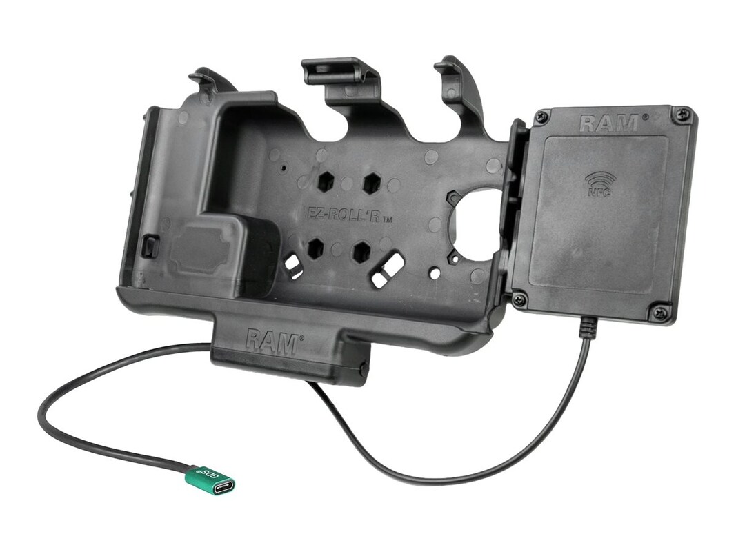 The RAM-HOL-SAM60CP-NFCU charging cradle from National Products is designed for tablets, offering a reliable solution for charging your device. With its high-strength composite material, this powered dock ensures durability while maintaining a sleek appearance. The USB-C cable, measuring 21.5 cm in length, provides easy connectivity, making it a practical choice for tablet users. The cradle features near field communication (NFC) capabilities, enhancing functionality and allowing for effortless pairing with compatible devices.