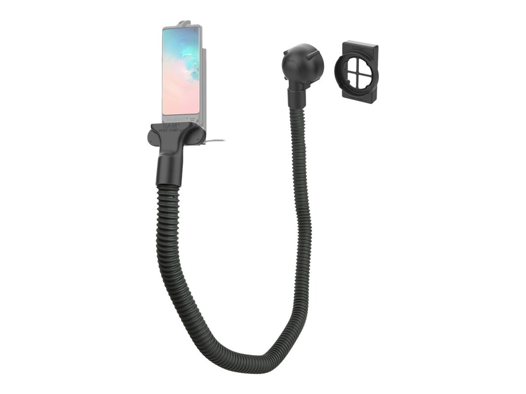 This RAM Vent-Temp temperature module accessory (RAM-VENT2-RCT-50U) installs to the front of any RAM or GDS dock and attaches to rectangular A/C vents using included zip ties. This RAM Vent-Temp directs air produced by your vehicle's A/C system to either cool, or heat up the front of the docked phone or tablet. This is ideal for environments where the tablet needs to be cooled off or heated up to maintain operating temperatures during critical work functions, or to defrost the front of the device to keep your touchscreen operable. When installed correctly and vent cover is attached to a rectangular air vent, both the hose adapter and front dock attachment feature integrated magnets for easy break-away when the RAM Vent-Temp is not needed, or gets caught on something that could tug on the hose. The 50" included flexible hose can be cut to the desired length of reach from vent to dock.