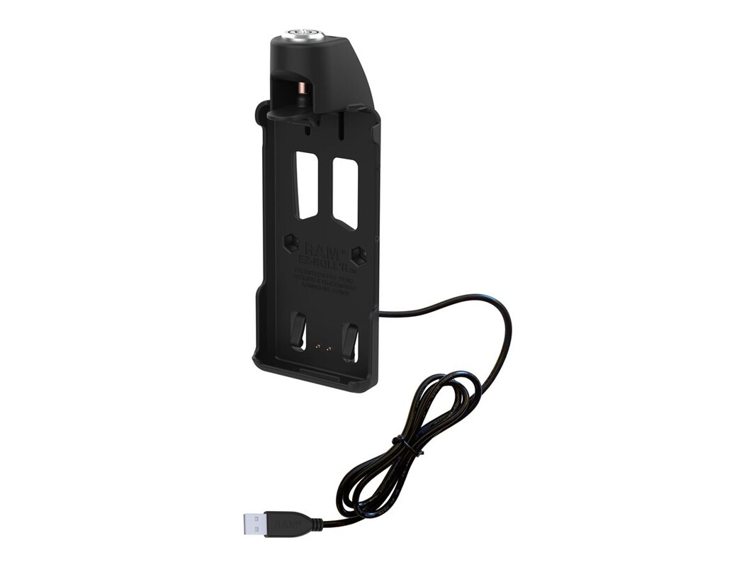 The RAM EZ-Roll'r charging cradle by National Products is designed to provide a secure and efficient charging solution for cellular phones. With a cable length of 1.25 m, this cradle utilizes a 4-pin USB Type-A input connector to deliver reliable power. The locking powered dock ensures that devices are safely held in place while charging, making it an ideal choice for busy environments. Constructed from high-strength composite materials and UL 94 V-0 compliant ABS plastic, this dock withstands wear and tear while providing performance.