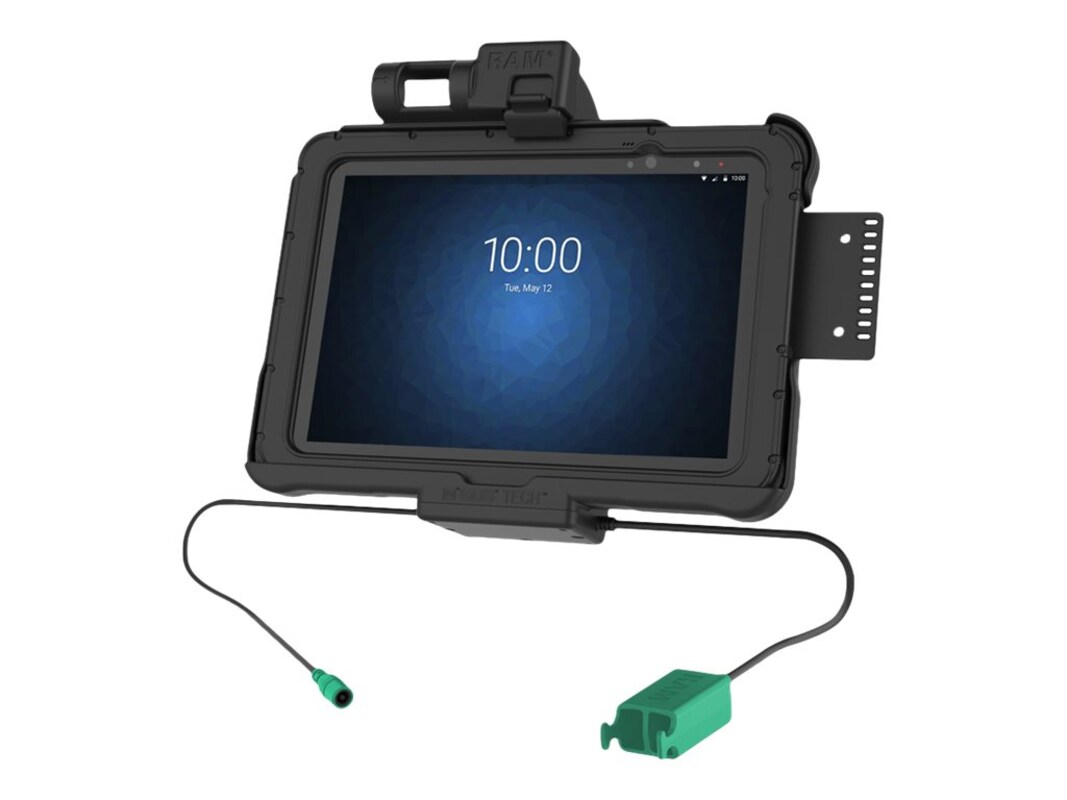 Featuring GDS technology for data and charging capabilities, the GDS Vehicle Dock for Zebra ET5x 10.1" series tablets allows you to connect up to two desired peripherals while keeping the device charged through the pogo pin contacts when the device is docked. Power is provided by connecting to the dock's 5.5 mm DC power jack, while peripheral support is provided by the built-in dual USB Type A cable. The dock also allows the tablet's scanning function to work through the cutout on the back which also accommodates tablet add-ons such as scanner, hand strap, and PowerPack battery. This vehicle dock is compatible with C and D size RAM 4-hole AMPS and 75 mm x 75 mm VESA pattern bases for attaching a double socket arm in order to complete your mounting solution. Take the solution a step further by taking advantage of the built-in 2-hole mounting plate compatible with RAM 2-hole diamond base for additional device mounting such as a phone, or other handheld device.