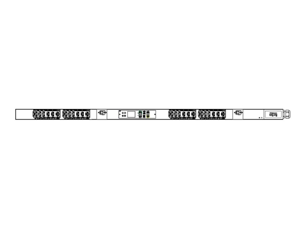 The Raritan PX4-59A0U-E7 power distribution strip provides efficient management of power requirements in a compact, rack-mountable design. Equipped with a 3 m power cable, this unit supports various connections including USB Type-A, USB Type-B, and Gigabit Ethernet, ensuring utility in different environments. Features such as tool-less button mount and extruded aluminum housing combine durability and ease of installation. This power distribution unit (PDU) offers monitoring capabilities with implemented metering for each input line and branch circuit, providing data for optimal power management. Remote management is facilitated through multiple protocols such as SNMP, HTTP, and Telnet, allowing for seamless accessibility. The device is compliant with several standards, including UL, ICES-003, RoHS, and FCC Part 15 A, assuring safety and reliability.