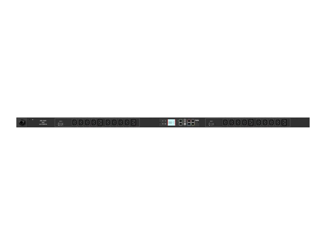 The Raritan PX3-5464 power distribution unit is designed to provide reliable and efficient power management for racks. With a rack-mountable form factor and 20 output connectors, this PDU is capable of handling significant power loads. It features a built-in LCD display that offers real-time metering for energy consumption and provides insights into voltage, current, and power factors to facilitate monitoring and management of power usage. The unit supports various remote management protocols, ensuring control and monitoring options to fit diverse environments.